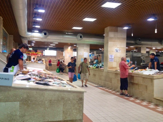 It's time to leave Cagliari and head for Sicily, so we walk to the market in the Piazza di San Benedetti for provisions. Markets always seem to capture the essence of a place in a way that nothing else does. I suppose it is because they have all the ingredients: indigenous people, local produce, noises, smells and colours, all in a confined space, producing an intense concentration of local culture. We fantasise that each stall is the shop window for a smallholding somewhere inland, where the crop is grown and harvested by the owners who then sell their produce in the freewheeling heat of the market. The stallholders are friendly and persuasive, filling our shopping bags with delicate figs, peaches, tomatoes, limes, melons and creamy white balls of buffalo mozzarella and crumbling Parmesan. Fatty returns with two fresh fish and a handful of bright red prawns, almost wriggling in the bag, having been escorted to the fish market by solicitous Italians, eager to help. For less than fifty Euros we are fully laden, with fresh produce and not a minute, or a Euro, spent in a supermarket.