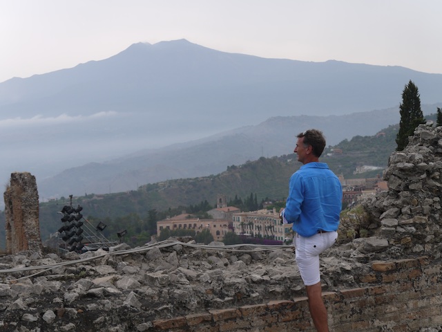 Greek amphitheatre with its perfect views over the valley to Mount Etna. In the